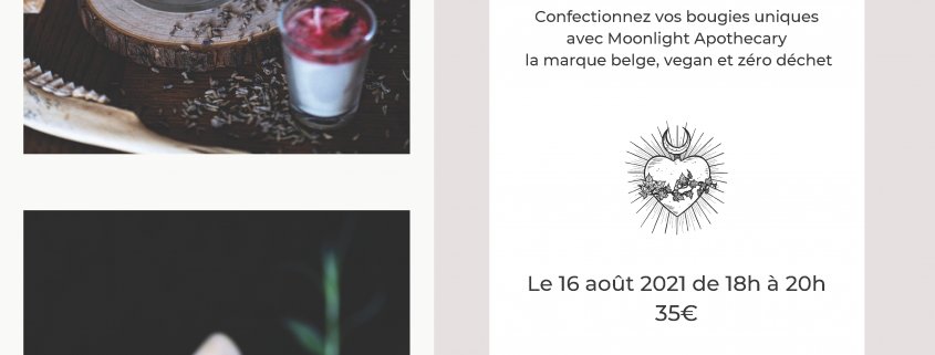 Roxane, créatrice de Moonlight Apothecary, vous accueillera à la FAML pour un véritable moment d’échange et d’apprentissage. Lors de cet atelier, vous apprendrez tout ce qu’il faut savoir pour réaliser vos propres bougies que vous pourrez ensuite offrir ou emporter à la maison, pour un moment de bien-être !